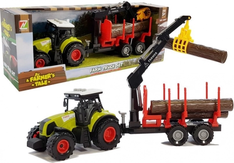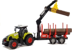 - Трактор, горско ремарке, 3 дървени трупи, въртящо се рамо (кран), батерии