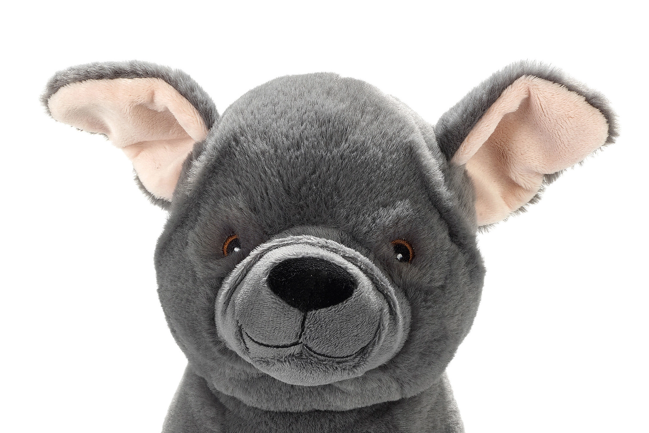 Очарователното плюшено кученце във стил френски булдог ще зарадва деца и възрастни. Изработено е от 100% рециклирана пластмаса, притежава сертификат GLOBAL RECYCLED STANDARD и се отличава с високо качество и много приятен на допир материал.