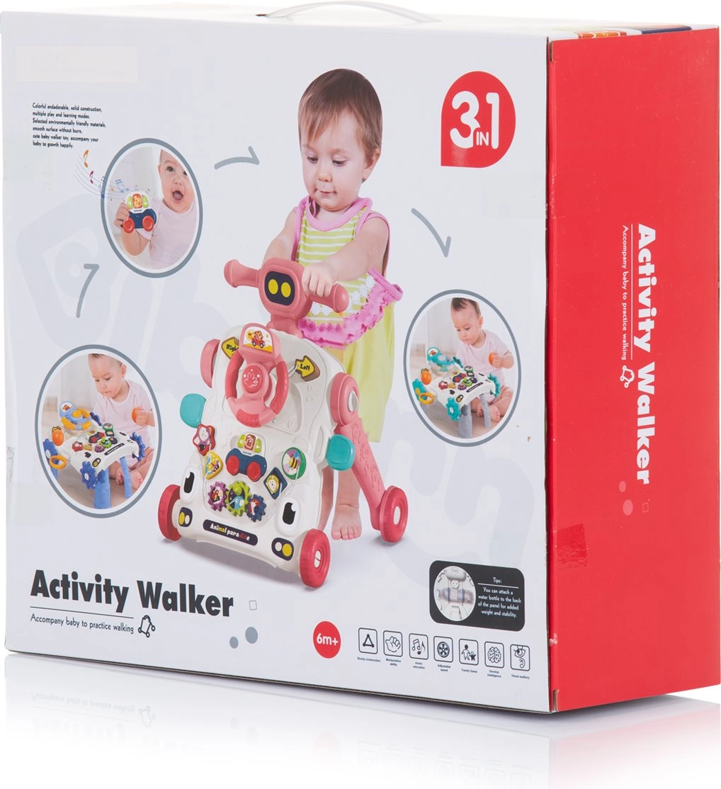 Мултифункционална играчка, която може да се използва като маси́чка за игра или като проходилка, осигурява на вашето дете часове интерактивно забавление.