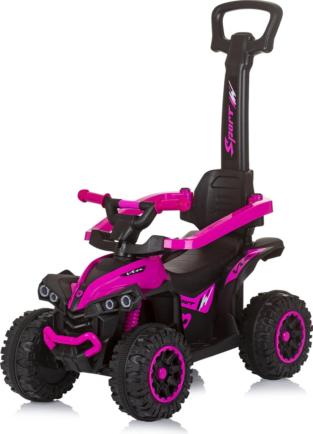 Стилната розова четириколка за бутане от марката CHIPOLINO съчетава безопасност, комфорт и забава за най-малките. Благодарение на водещата дръжка с удобен захват и свалящия се сенник децата могат да се движат с помощта на родителите или напълно самостоятелно. За развитието на моториката и координацията се грижат стабилните колела и мелодиите, които носят радост от карането.