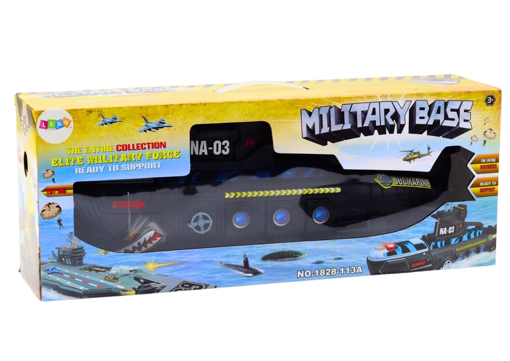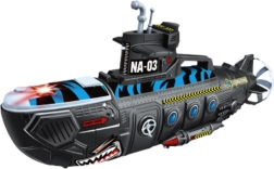 Тази голяма военна подводница ще зарадва всички деца, които са очаровани от войници, морски мисии и живота под водата. При натискане на горния бутон се активират реалистични звуци от стрелба, които засилват атмосферата на играта. Благодарение на интегрираните колелца подводницата се движи лесно по пода и е готова за действие в детската стая.