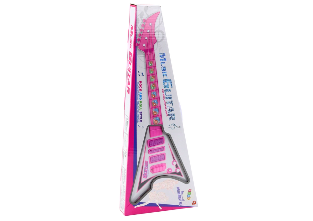 Тази розова електрическа китара за деца впечатлява с цветен дизайн и LED светлинни ефекти, които превръщат всяко изпълнение в домашен концерт. Благодарение на предварително записаните мелодии малките музиканти могат лесно да свирят с музикален фон, да изпробват нови звуци и да развиват музикалното си усещане.
