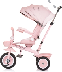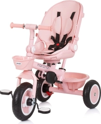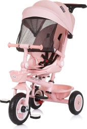 Триколката се характеризира и с качествени гумени колела с диаметър 10" (предно) и 8" (задни), сгъваем и регулируем сенник, кош за съхранение отпред и отзад, както и възможност за блокиране на предното колело.