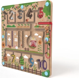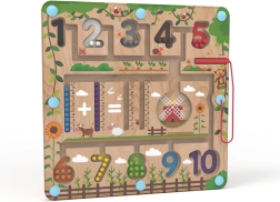 С помощта на магнитната писалка децата упражняват захвата, търпението и концентрацията, докато насочват топчетата към правилните места, допълват задачки и подреждат числата. Играта също така развива речника при назоваване на цветовете, животните и предметите.