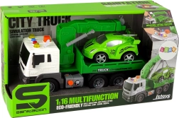 Освен автомобила за пътна помощ комплектът включва спортна кола, готова за ремонт във вашата детска работилница. Размерите на пътната помощ са 38 cm x 13 cm x 16 cm, а спортната количка е 18 cm x 8 cm x 7 cm. Играчката се захранва с три батерии AG13 (включени в комплекта) и е предназначена за деца над 3 години. Отговаря на стандарти CE и EN 71.