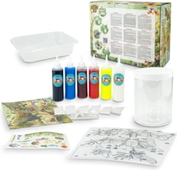 Готовите бръмбари можете да съхранявате в аквариум с водни кристали, които също са включени в комплекта. Аквариумът лесно се декорира с приложените стикери. Образователен плакат ще ви запознае с увлекателни факти за насекомите.