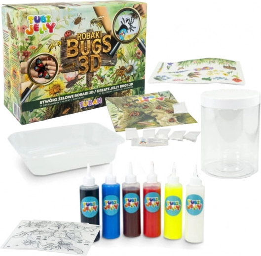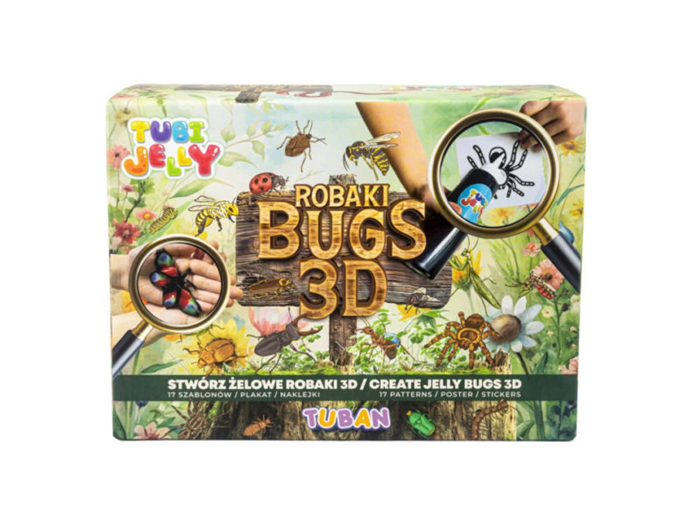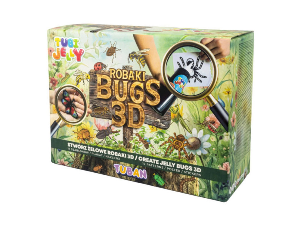Открийте магията на творчеството с Tubi Jelly Бръмбари 3D. С помощта на 17 шаблона създайте лесни и креативни гелови бръмбари. В опаковката ще намерите и празно фолио за проектиране на ваши собствени насекоми. Специален активатор превръща течния гел в твърда фигурка.