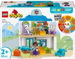 Открийте емоциите и развийте координацията с LEGO DUPLO Моето градче: Посещение при лекаря за деца от две години. Комплектът включва четири фигурки и много забавни лекарски аксесоари.