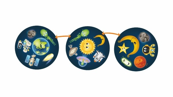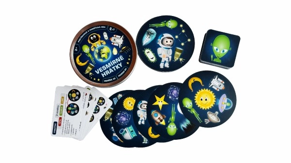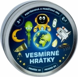 Космически игри 2в1 носят двойна доза забавление в компактна опаковка. Благодарение на двете любими игри – Хмата́к и Мемо (Пексесо) – децата развиват наблюдателност, концентрация и памет по игрови начин. Красивите космически илюстрации впечатляват от пръв поглед, а лесните правила са по силите и на най-малките.