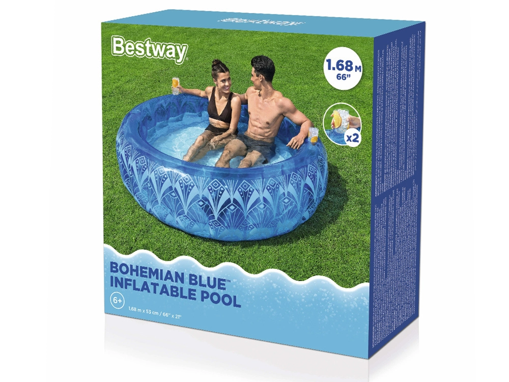 Подарете си незабравими моменти с надуваемия басейн Bestway Bohemian Blue във вашия собствен двор. С неговата здрава I-beam конструкция и широки странични стени той осигурява максимална стабилност и комфорт за семейства с деца от 6 години нагоре, които искат да се насладят на радостта от водните игри.