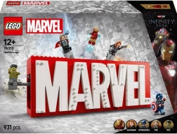 Насладете се на уникална комбинация от строене и изложба с впечатляващия червено-бял надпис MARVEL, който крие пет легендарни герои: Хълк, Тор, Железния човек, Черната вдовица и Капитан Америка. Натиснете трите отделни бутона отгоре и вижте как минифигурките изскачат от логото – екшън като от филмите на MARVEL Studios оживява пред очите ви.