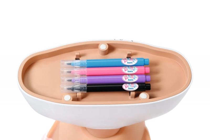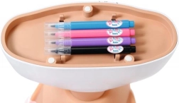 Създавайте върху лицето на куклата уникални мотиви и грим с помощта на 4 цветни маркера и приложен шаблон – бързо, лесно и без граници за въображението.
