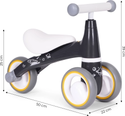 Трениращото баланс колело ECOTOYS е идеално за най-малките деца, които започват да откриват света на колелата. Подходящо е за деца от 12 месеца, които вече правят първите си стъпки. Карането на това колело подпомага моторната координация и поддържането на баланс, като по този начин подготвя детето за умения като качване, слизане и оттласкване.