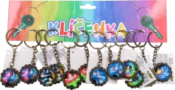 Стилен кръгъл ключодържател с космически мотив, който ще зарадва любителите на звездите и планетите. Предлага оригинален дизайн, лесно закрепване към ключове или раница и е идеален като малък подарък.