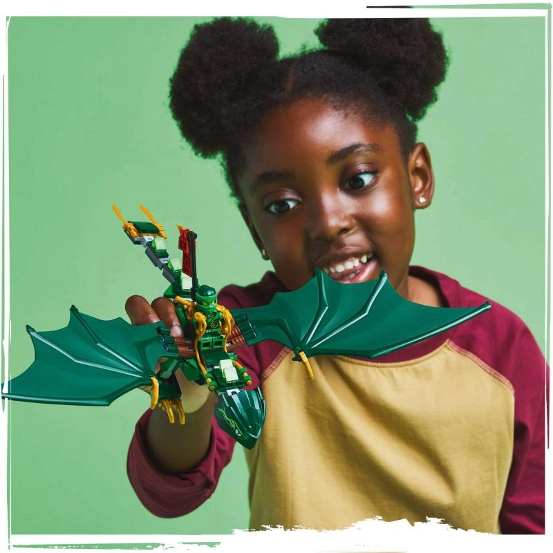 Потопете се в света на NINJAGO с модела Зеленият горски дракон на Лойд, който предлага подвижна опашка, врат, крака, лапи и големи крила, както и седалка за минифигура. В комплекта ще намерите минифигурки на Лойд със златна катана и драконски разузнавач с двустранна брадва, както и златно драконче за още повече възможности за игра. Идеален подарък за деца от 6 години, които обичат екшън истории и строене.