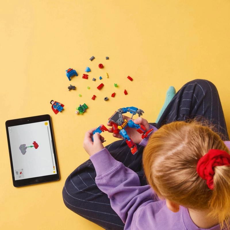 Съсредоточете се върху забавлението с LEGO DC Мехът на Супермен срещу Лекс Лутър, който включва две минифигурки: Супермен с наметало и нови изражения на лицето и Лекс Лутър с изстрелвач и криптонитов кристал. Подвижният мех на Супермен има гъвкави ръце, крака и пръсти и предлага кокпит за минифигурката. На гърба на меха ще откриете два регулируеми тласкача, които му позволяват да лети, давайки на децата възможност да се потопят в супергеройски истории.