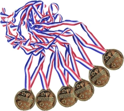 Поднесете на всеки малък победител радостта от триумфа. Златните медали с надпис WINNER и звездички изглеждат представително, а благодарение на PVC материала са безопасни и леки. С трикольорната лента се носят удобно и се раздават лесно по време на състезания и събития.