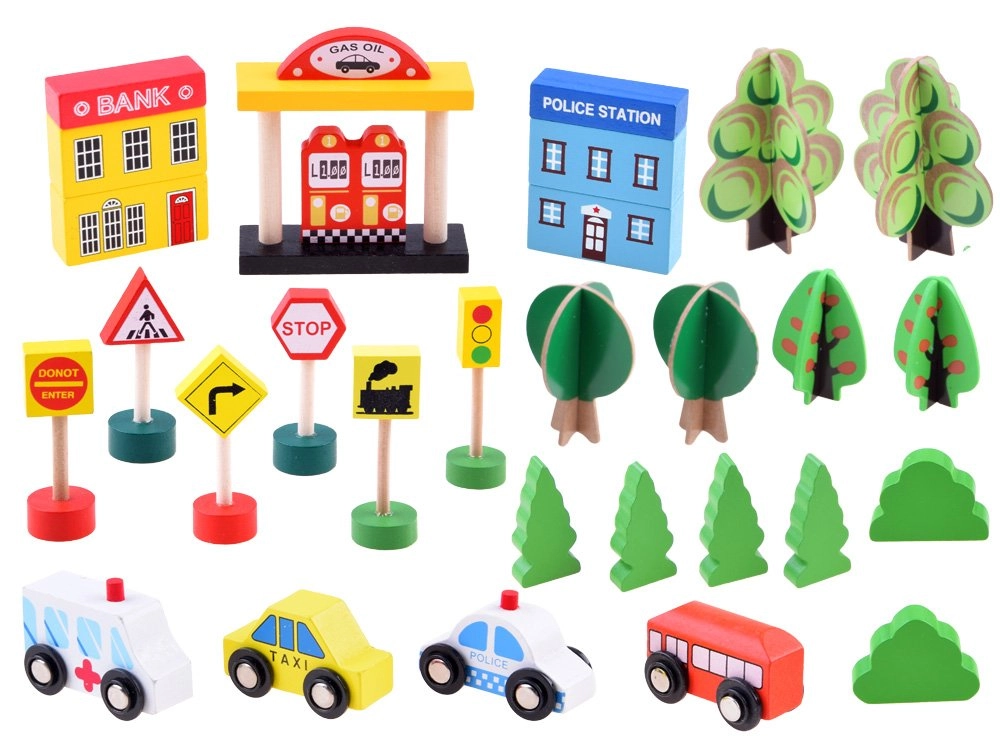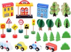 Благодарение на възможността за сглобяване и пренареждане на цялото градче, играта никога не омръзва. Безопасният, издръжлив и екологичен материал прави тази играчка перфектен избор за вашето дете.