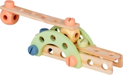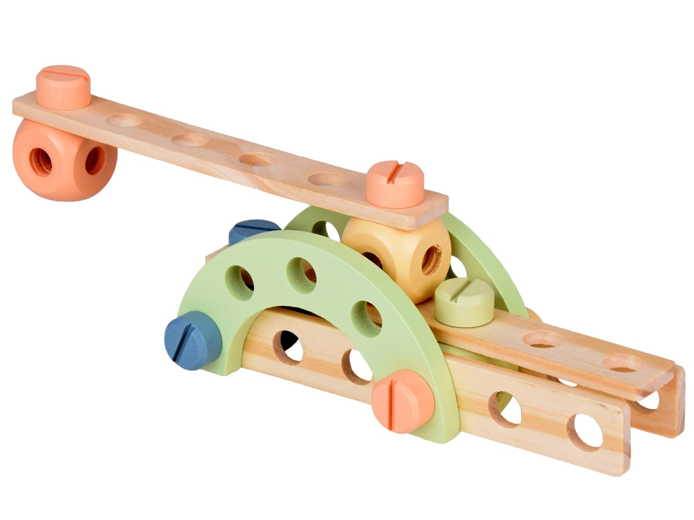 Благодарение на цветните винтове и гайки децата се учат да разпознават цветовете и да свързват частите, което развива логическото мислене.