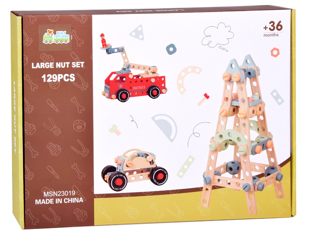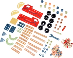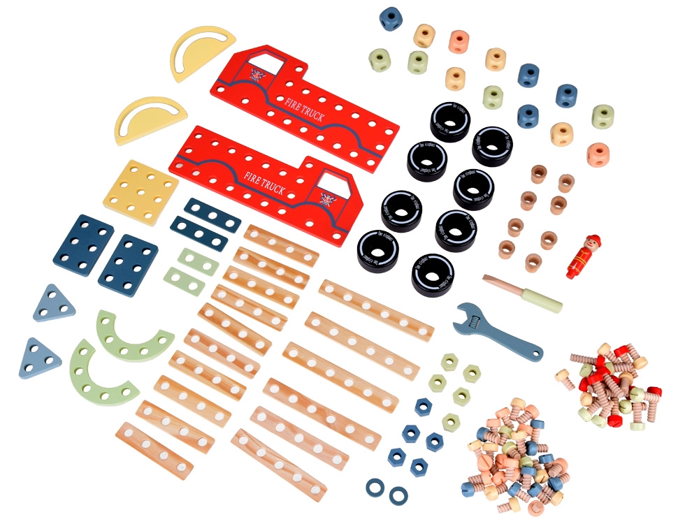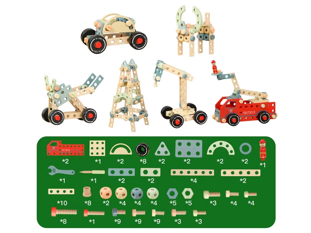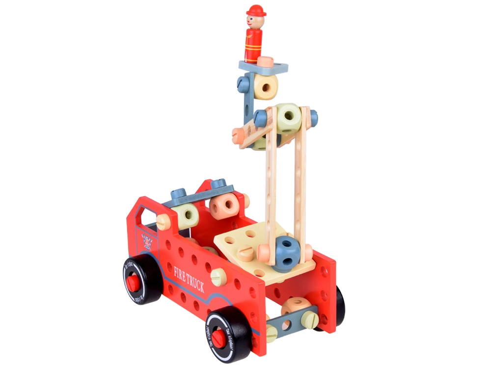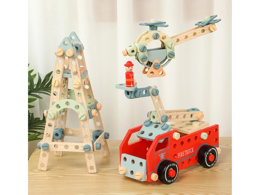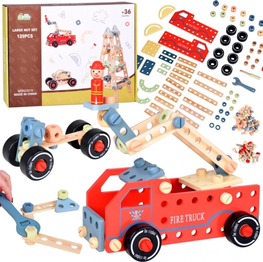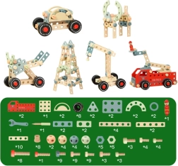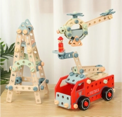 Потопете се в света на творчеството с нашия дървен конструктор, който подпомага развитието на ключови умения у децата. Този образователен сет позволява създаване на различни модели, като пожарни коли, самолети и други креативни форми.