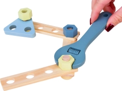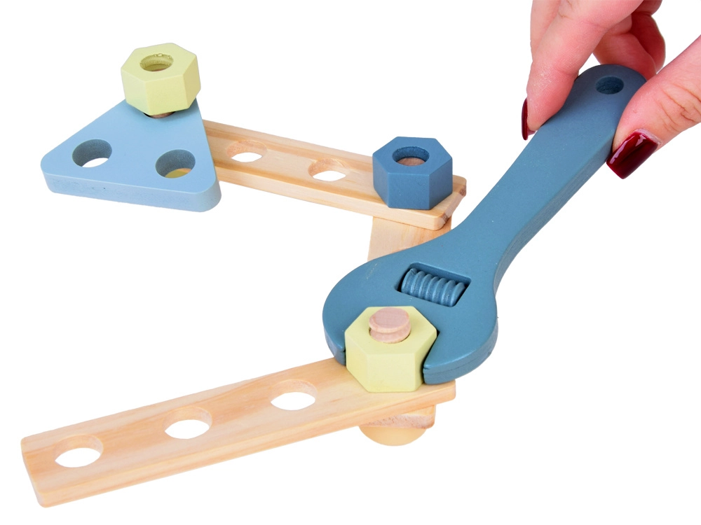 Комплектът дава възможност на децата да се запознаят с функциите на инструментите и да имитират дейности на възрастните, като работа с дърво. Манипулирането с винтове и гайки помага за укрепване на мускулите на ръцете и подобрява координацията между зрение и движения. Благодарение на своята универсалност този сет е идеален за домашна и външна употреба и е чудесен начин да прекарате време със семейството.