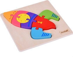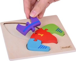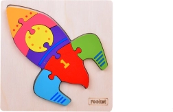 Популярна дидактическа играчка по принципите на Монтесори, която помага на децата да разберат връзката между формите и частите към цялото. Цветните сегменти на ракетата се хващат лесно и се поставят в фрезованата дъска, така че децата упражняват прецизност и търпение.