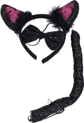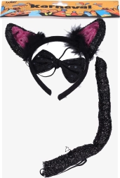 Комплектът „черна котка“ е перфектен както за карнавали, така и за рождени дни или тематични партита. Благодарение на своя прост дизайн е подходящ за деца от 6 години. Всеки елемент е проектиран с мисъл за комфорт и безопасност – гъвкавата диадема се адаптира към различни размери на главата, а папионката и опашката осигуряват удобно носене за по-дълго време. Черният цвят придава на костюма непреходна и универсална визия, която лесно се комбинира с различни стилове облекло.
