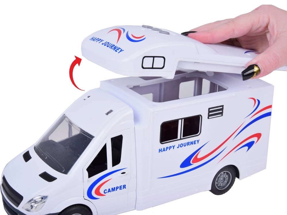 Кемперът има отварящи се врати и покрив, които осигуряват лесен достъп до вътрешността и насърчават ролевата игра и въображението.