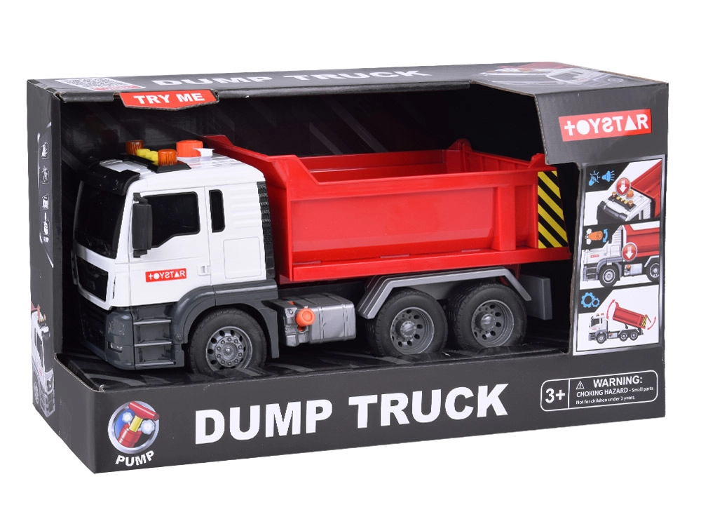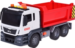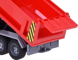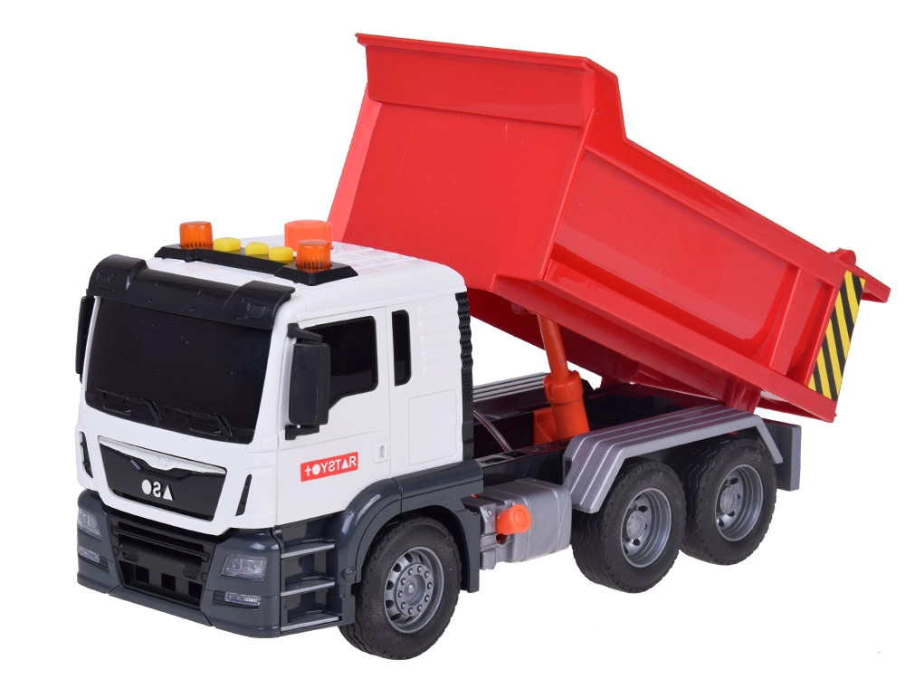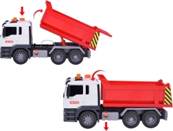 Този строителен камион е перфектна играчка за развитие на креативността и въображението у децата. Неговият реалистичен външен вид и детайли като звуци на двигател, клаксон и мигащи светлини правят играта още по-забавна. Подвижната самосвална каросерия позволява на децата да пресъздават истински строителни сценарии.