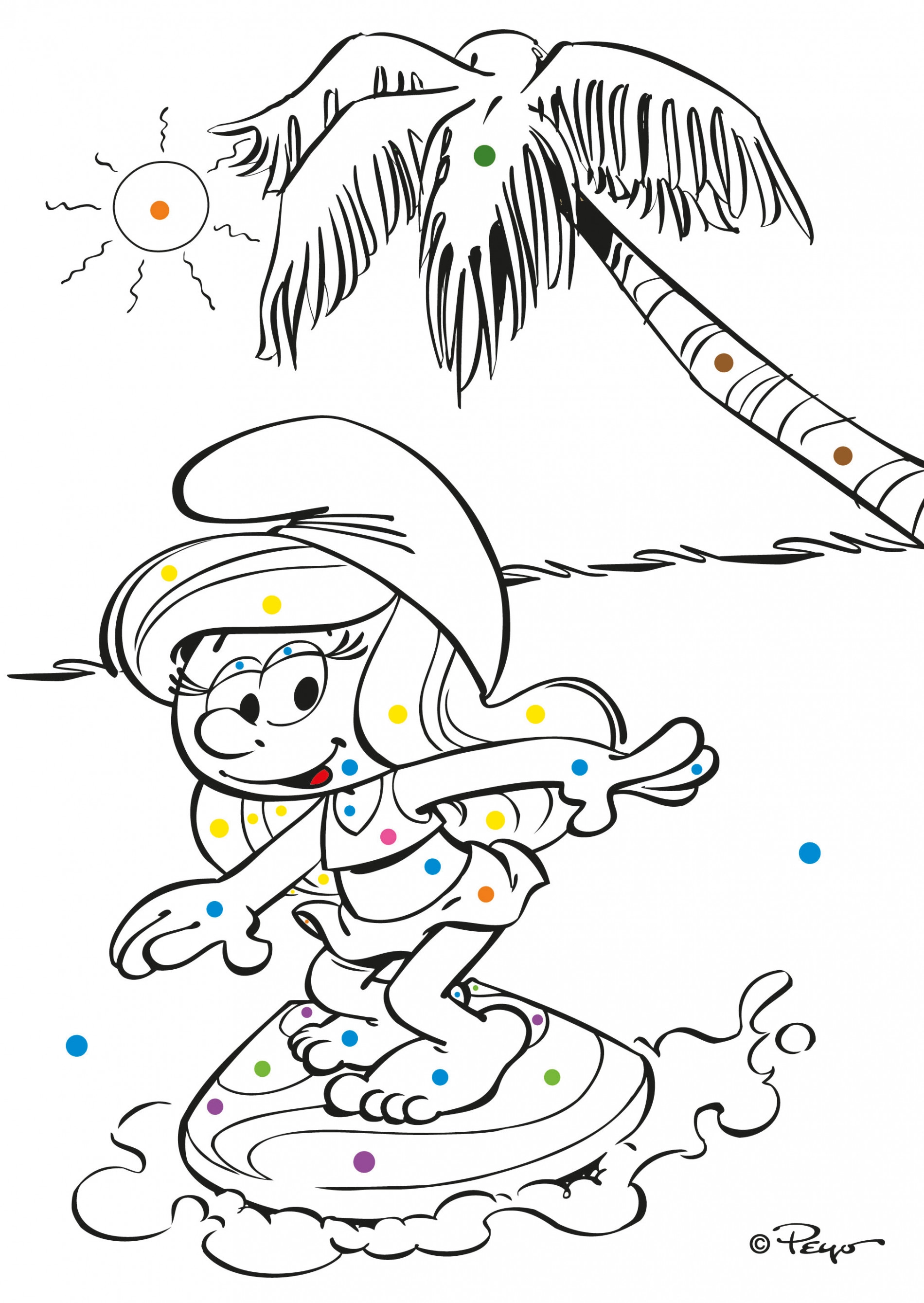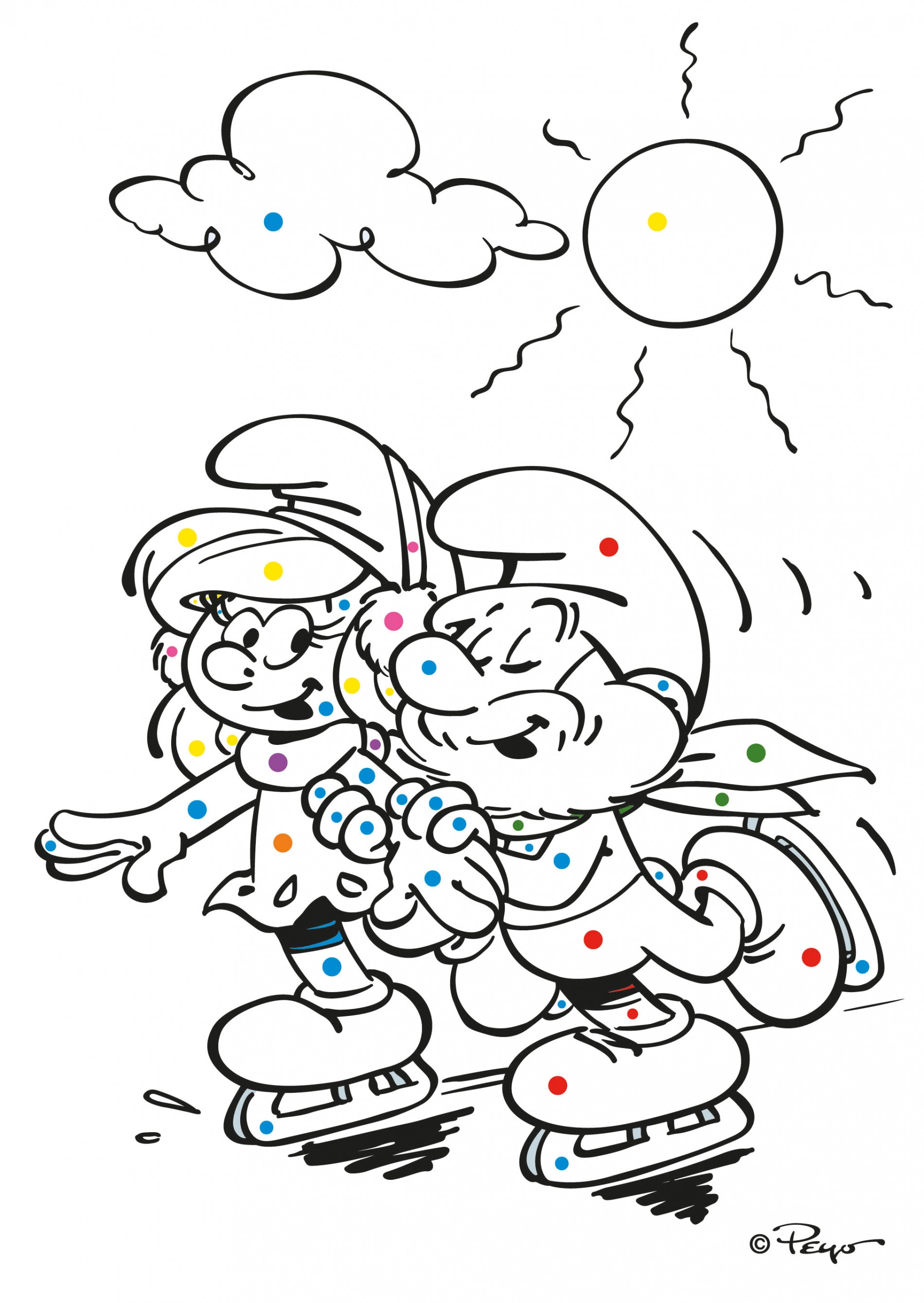 Красиви оцветявки Смърфовете A5 за най-малките творци. Рисувайте по цветните точки и вижте как се появяват красиво оцветени картинки с включените в комплекта пастели.