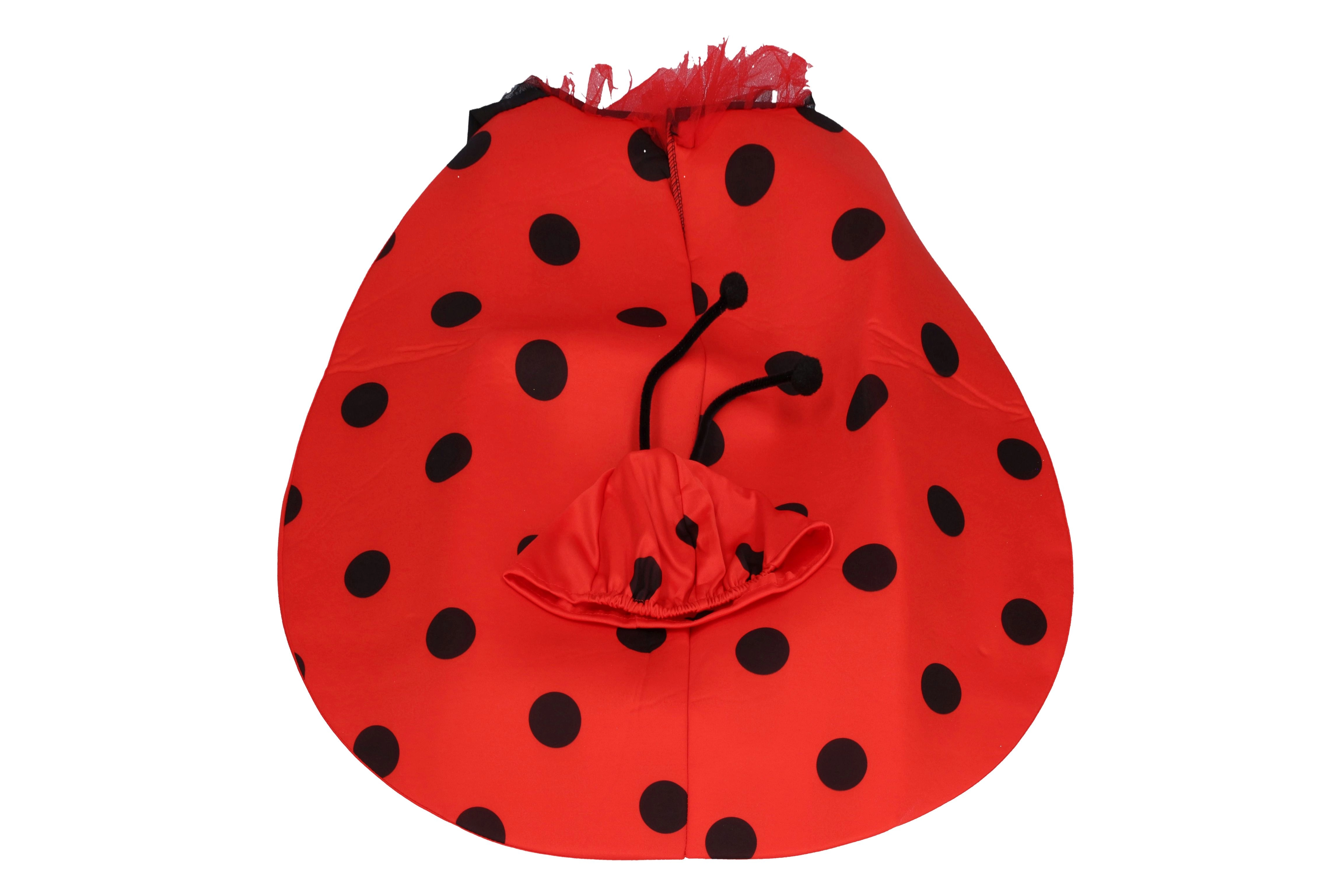 Очарователен костюм на калинка за деца с ръст 110–120 см, перфектен избор за карнавал или маскараден бал. Този комплект включва облекло и шапка, които придават на вашето дете вълшебна визия.