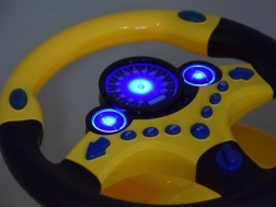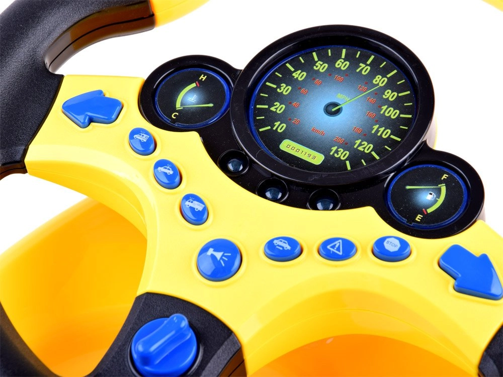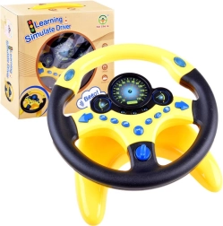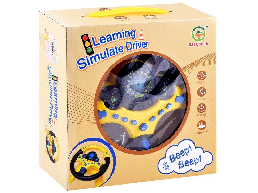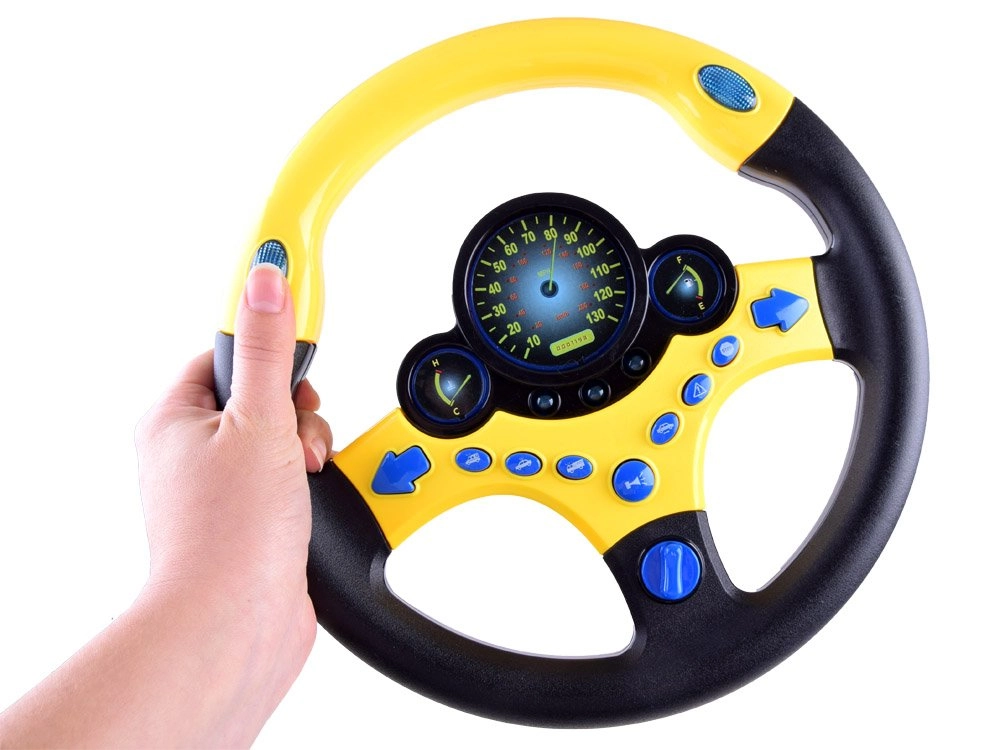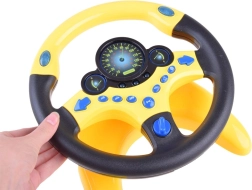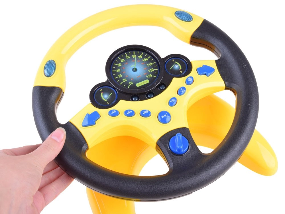 Интерактивният детски волан носи реалистично забавление както по време на път, така и у дома. Предлага светлинни ефекти, звуци на превозни средства, клаксон, мигачи и светофар, които развиват фината моторика, координационните умения и въображението на децата.