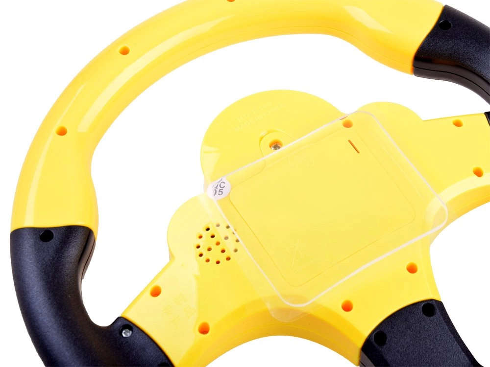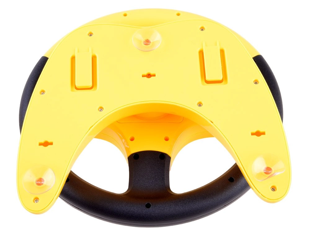 Воланът е изработен от издръжлива пластмаса, лек е и е ергономично оформен за детски ръце. Благодарение на стабилната основа и здравата вендуза лесно се закрепва към маса, гладка повърхност или прозорец – идеален за у дома и за път.