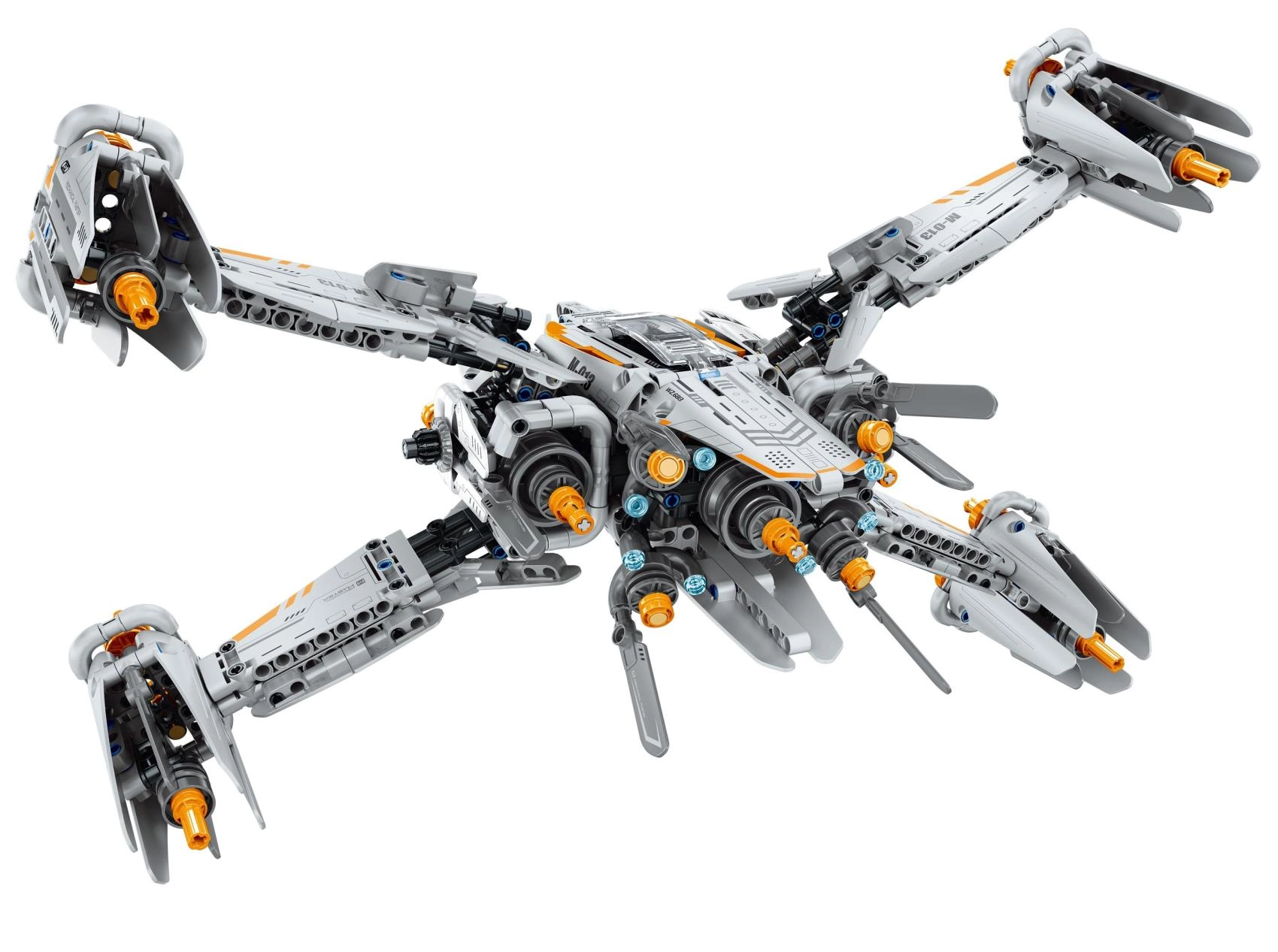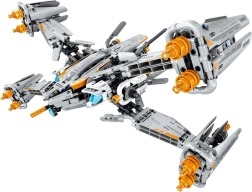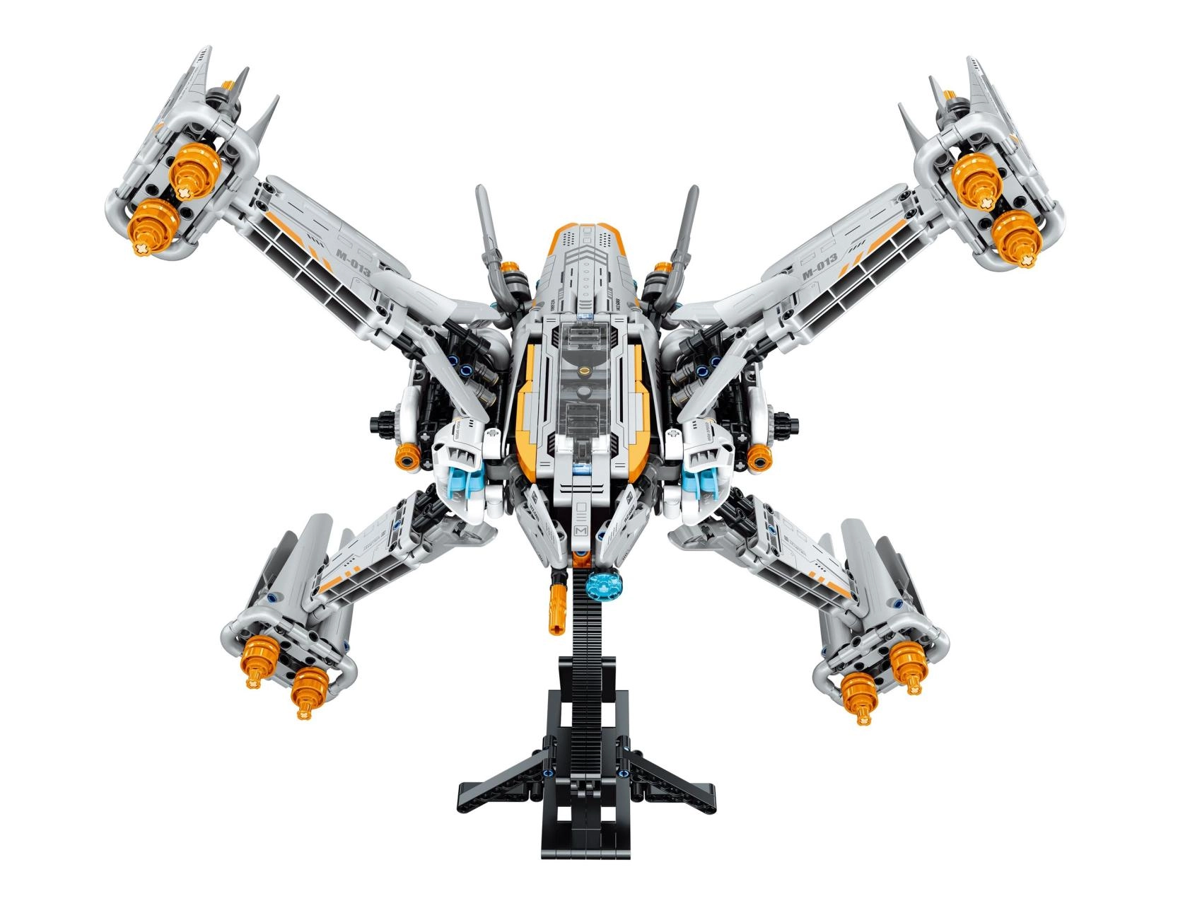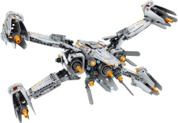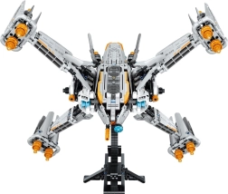 Този голям конструктор предлага всичко за вълнуващи космически мисии и впечатляващо изложение. Благодарение на добре обмислената конструкция лесно ще създадете футуристичен кораб с регулируеми крила, въртящи се двигатели и механично задвижване, което придава на модела реалистична визия и функция. Стабилната стойка подчертава всеки детайл на рафта.