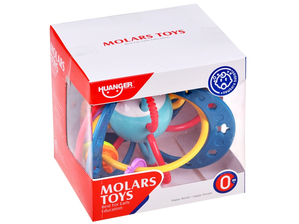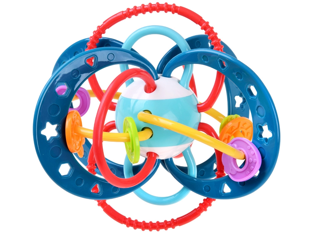 Цветна сензорна гризалка топче с дрънкалка за бебета
