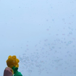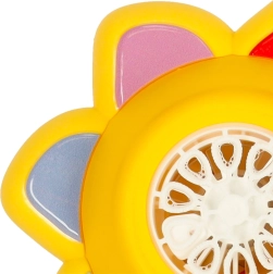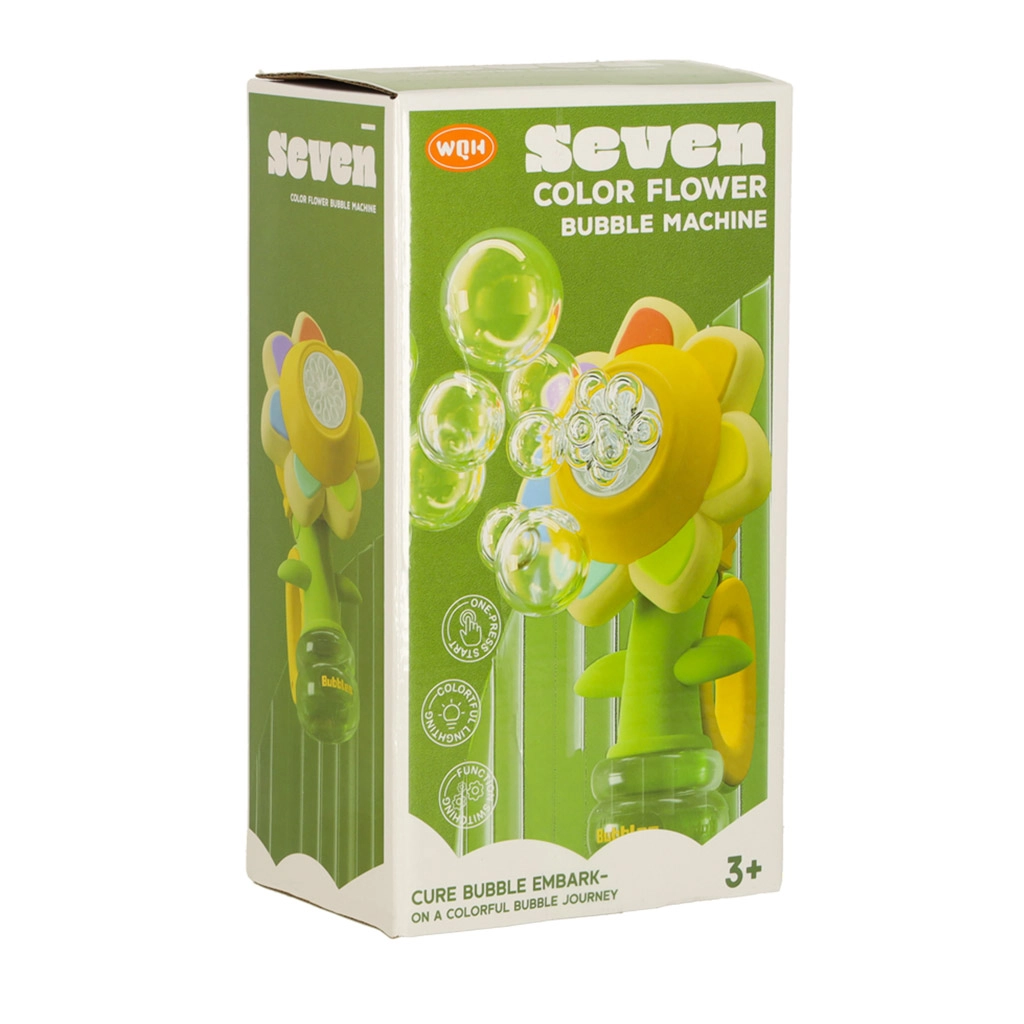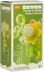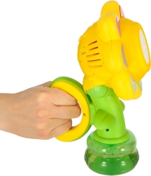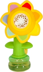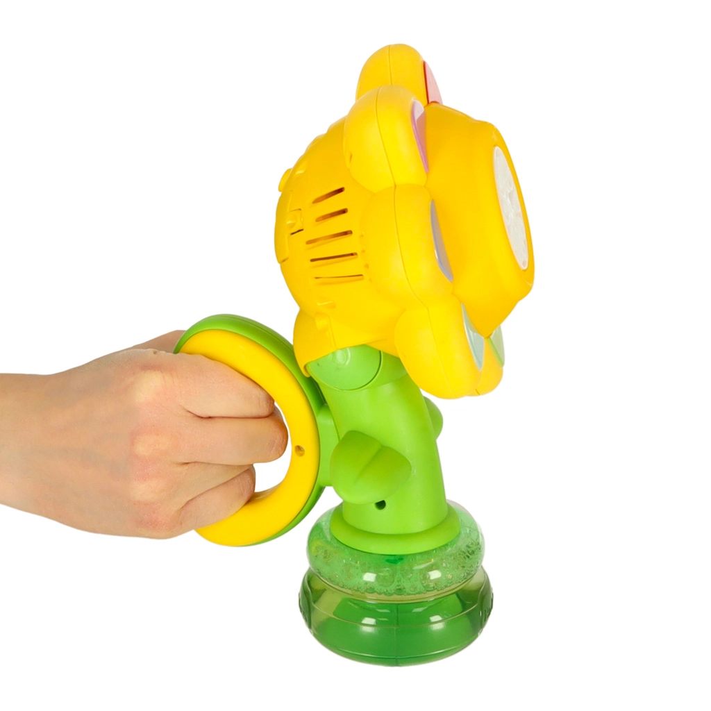 Тази детска машинка за сапунени мехури във форма на цвете е идеалният спътник за игри в градината или у дома. Автоматичното изпускане на мехурчета осигурява лесно управление и само с натискане на бутон мигновено се грижи за забавлението.