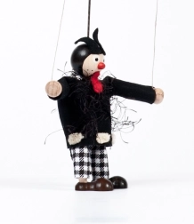 Марионетката дяволчето Бруно е качествен чешки продукт от защитена работилница, който ще зарадва деца и възрастни. Благодарение на водещите конци лесно управлявате подвижните ръце и оживявате фигурката във всеки разказ – от добро дяволче до истински палавник. Компактният размер без водещата тел (около 12 cm) е идеален за малки сцени и домашни представления.