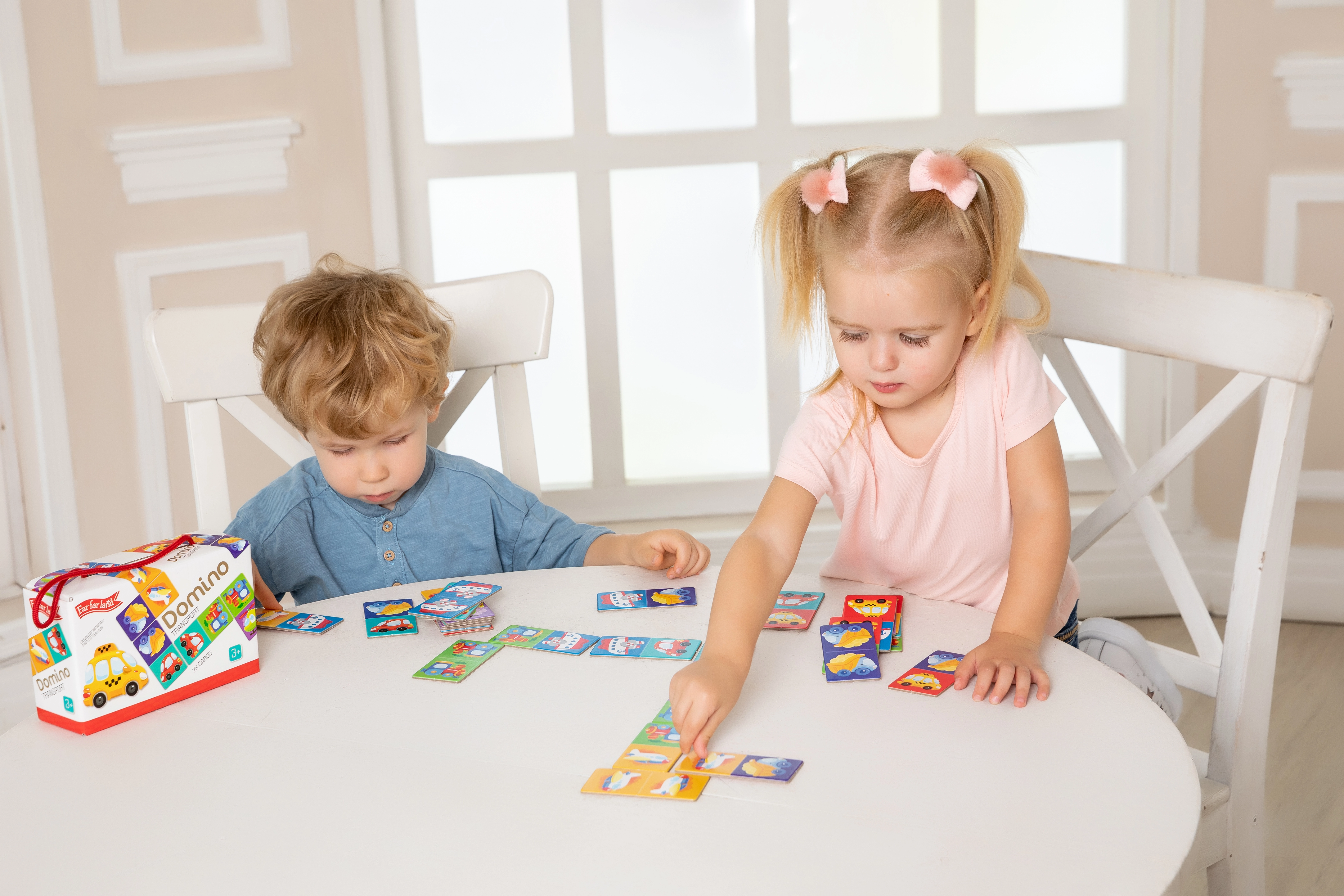 В комплекта ще намерите 28 карти с пъстри изображения на транспорт, които ще забавляват както децата, така и възрастните. Всеки играч започва с определен брой карти в зависимост от броя на участниците: