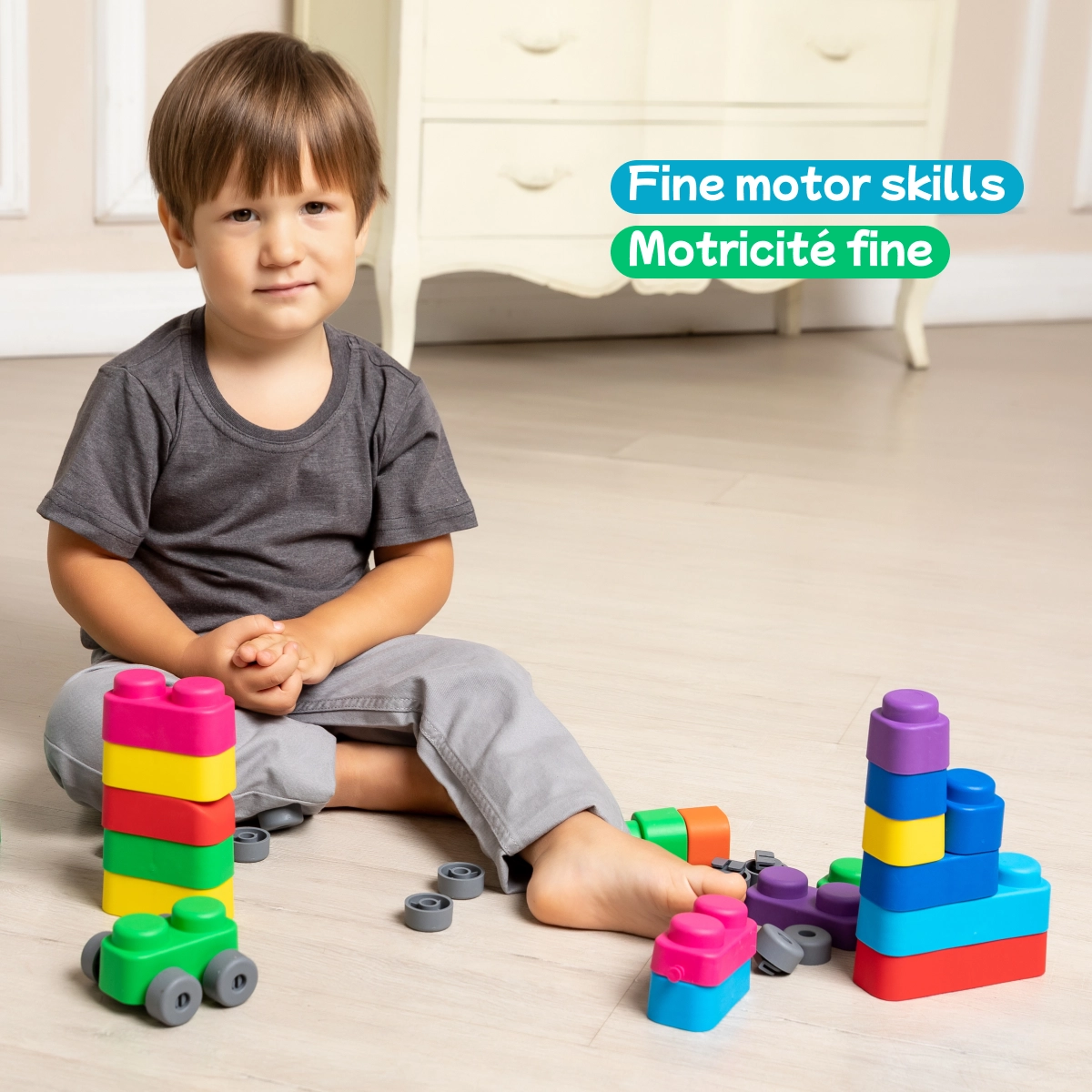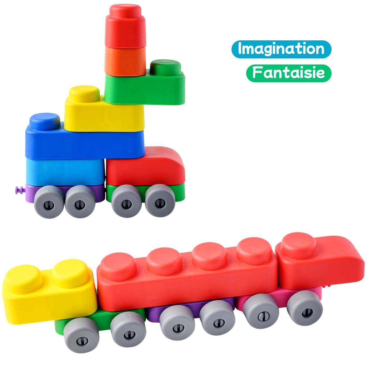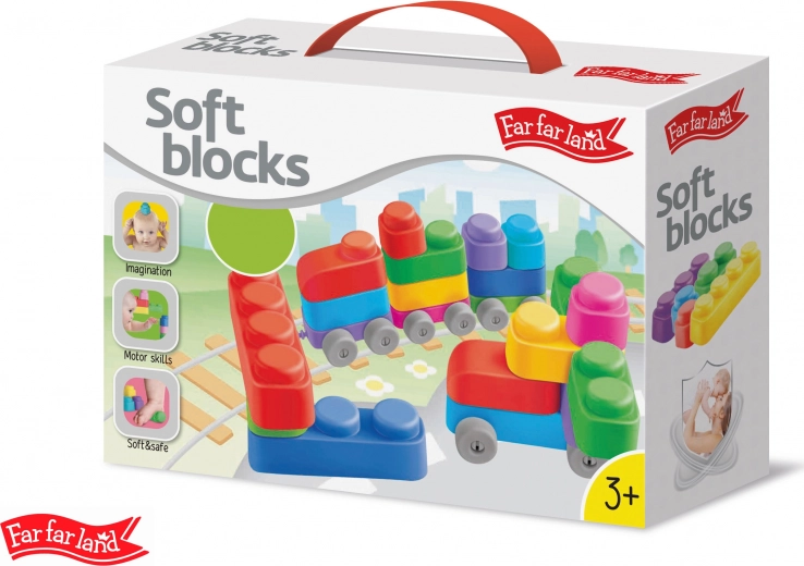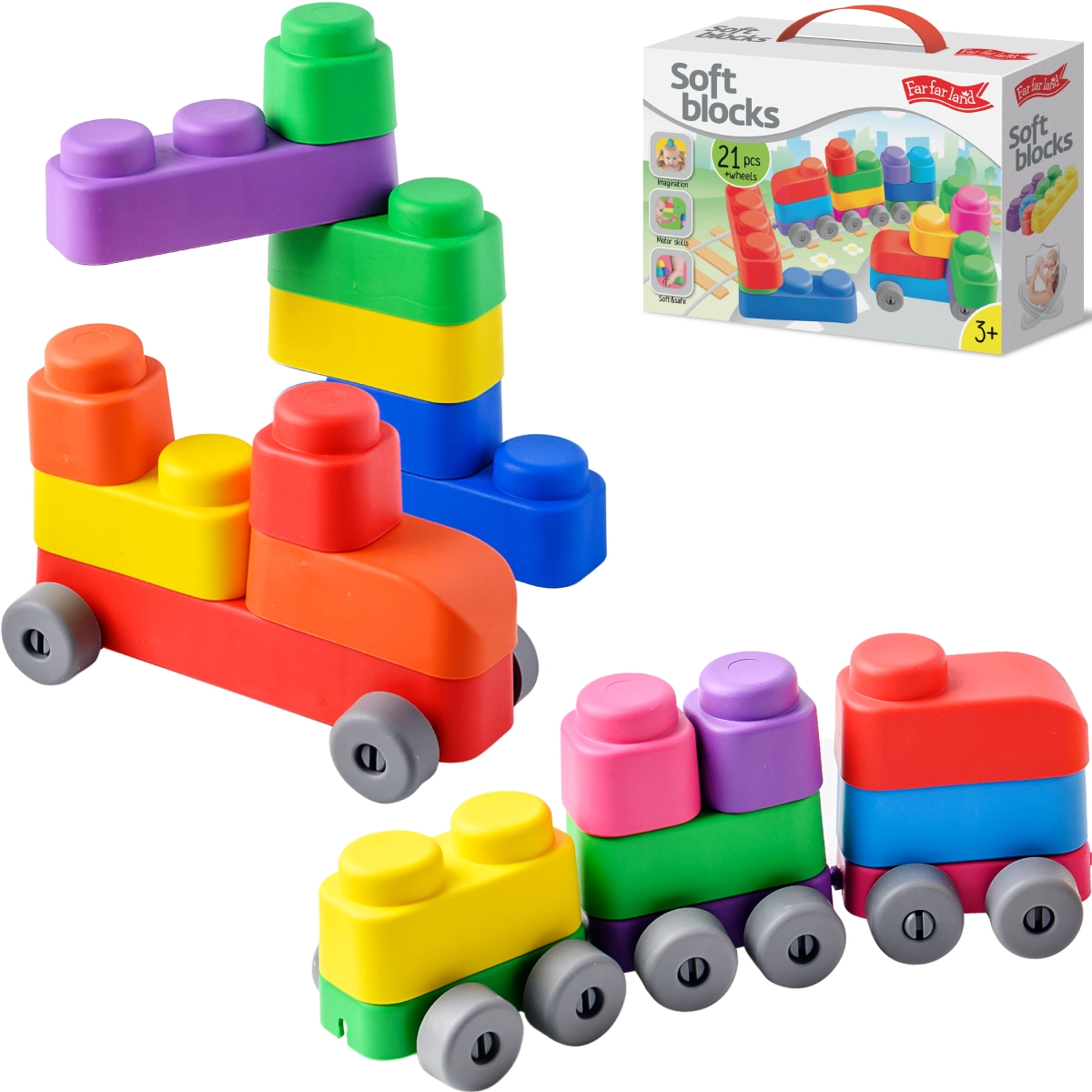 Конструкторът Far Far Land е забавна и креативна играчка за деца! Съдържа 21 меки блока и 16 колелца, които подпомагат развитието на моториката и въображението на вашите деца.