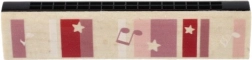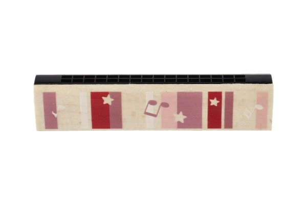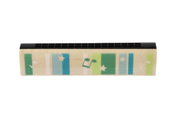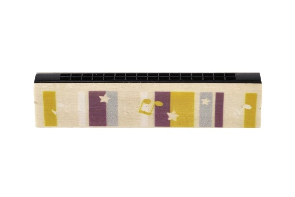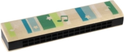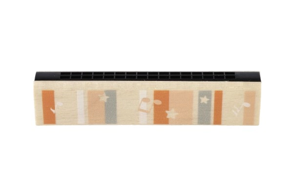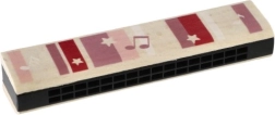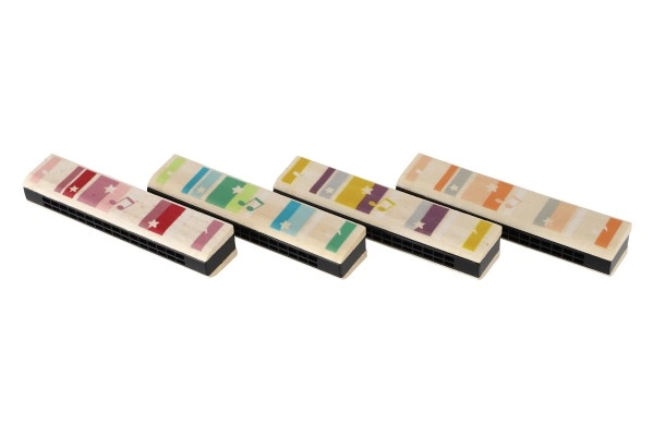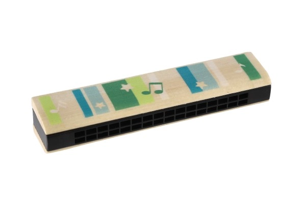 Хармониката е изработена от комбинация от дърво и пластмаса за удобен захват и дълъг живот. Подходяща е за начинаещи – достатъчно е да се духне и да се редуват вдишване с издишване за прости мелодии.