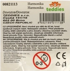 Тази качествена дървена хармоника за деца е страхотен въвод в света на музиката. Благодарение на компактния размер 13 × 3 × 3 см се държи удобно и на нея се свири лесно. Веселият декор мотивира децата да откриват звуци и развива тяхната креативност.