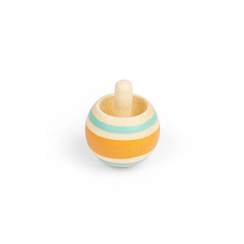 Този дървен пумпал е не само любим детски спътник, но и средство за развитие на координацията око-ръка и фината моторика. Благодарение на шестте цветови варианта – оранжев, жълт, зелен, тюркоазен, червен и син – всяко дете ще открие любимия си цвят. Затова го избират с желание както децата, така и родителите, търсещи безопасни и екологични играчки.