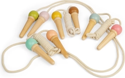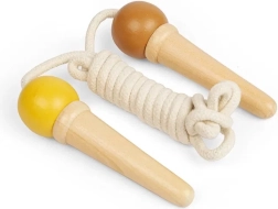 Това висококачествено дървено въже за скачане е идеален инструмент за мотивиране на децата към игри на открито и упражнения. Въжето е изработено от висококачествено, екологично щадящо дърво, сертифицирано по FSC®, и е боядисано с нетоксични бои. Напълно безопасно е и отговаря на всички действащи европейски стандарти за безопасност.
