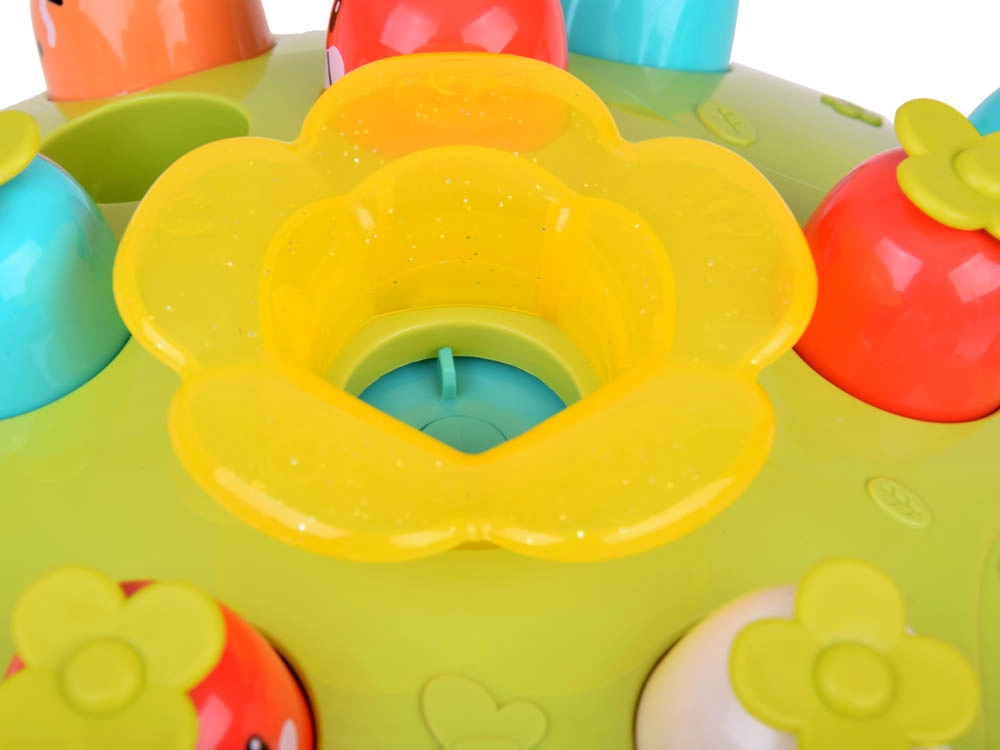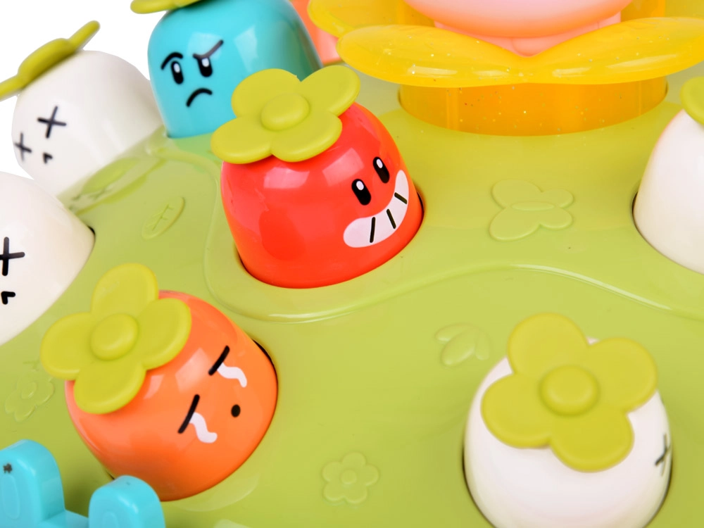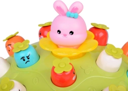 Забавлението е не само визуално и слухово, но и моторно. Детето може да наблюдава как ударите с чукчето влияят на поведението на отделните фигурки. В комплекта има безопасно чукче с мек накрайник. След края на играта чукчето може да се прибере в специален отвор до морковчетата.
