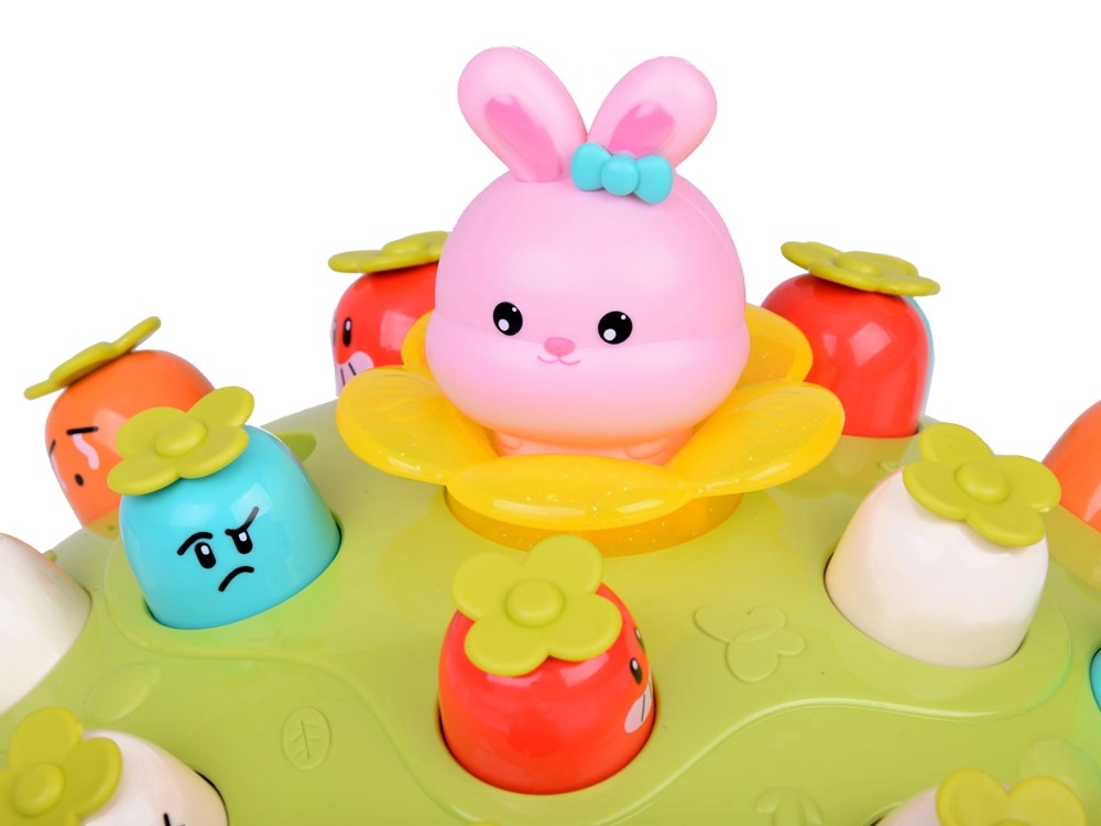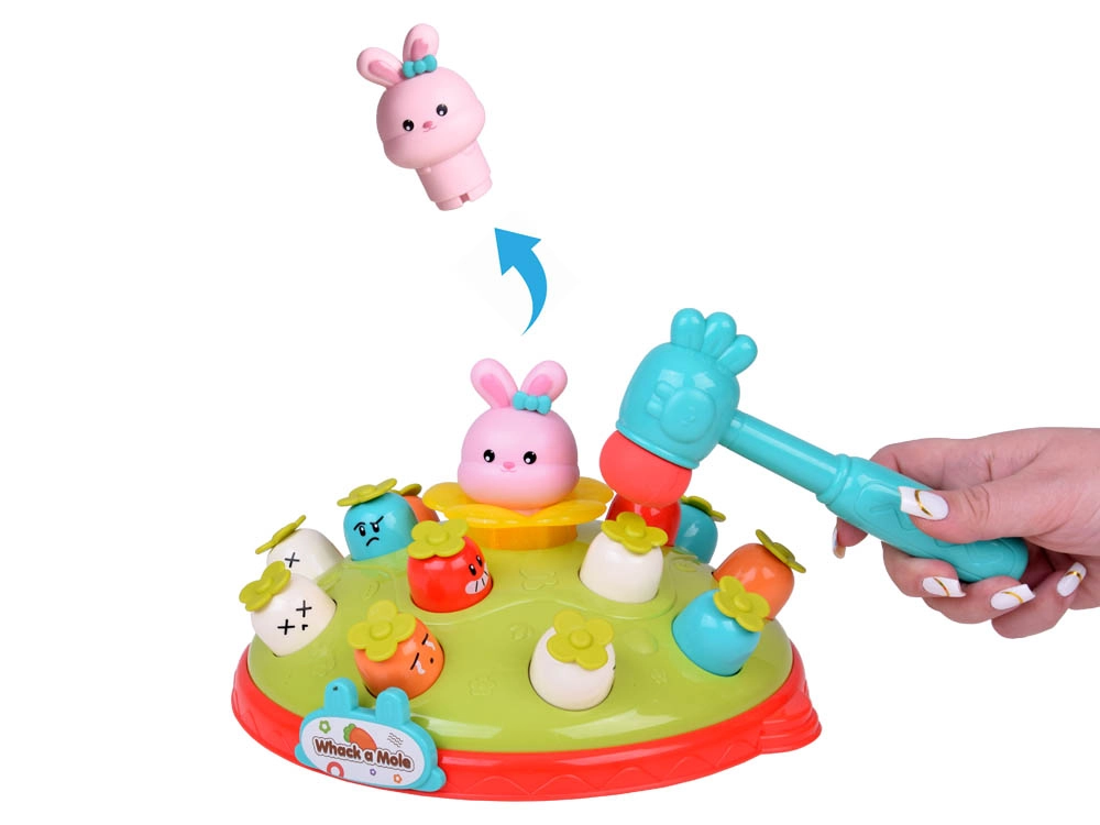 Зайчето, което при точен удар с чукчето изскача, и веселата мелодия, която съпровожда цялата игра, правят забавлението още по-привлекателно.