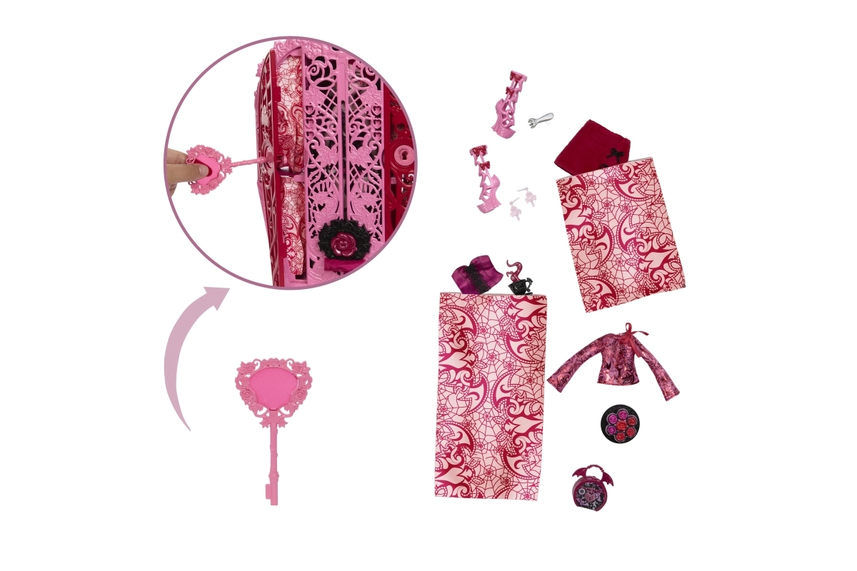 След края на играта децата могат да прибират куклата, облеклата и аксесоарите в страшния гардероб, идеален за разиграване на истории и като място за съхранение. Всяка кукла е напълно артикулирана, което предлага безкрайни възможности за креативна игра.