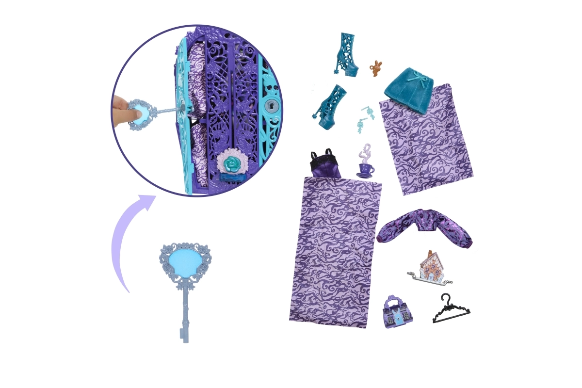 Съхранявайте куклата и нейните аксесоари в красиво проектиран страховит гардероб.
