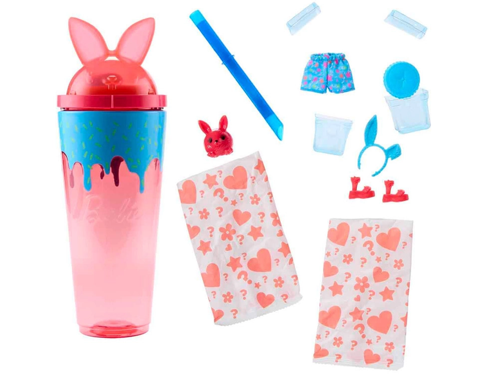 Иконичната Barbie в серията Pop Reveal Shakes предлага комбинация от разопаковане, стилизиране и сетивна игра. В чашка, вдъхновена от плодов шейк, ще откриете кукла с дълга цветна коса, моден тоалет, аромат на шейк и куп аксесоари за креативни истории. Два прозрачни „ледени“ блока крият къси панталонки или пола и стилни обувки, които могат свободно да се комбинират.