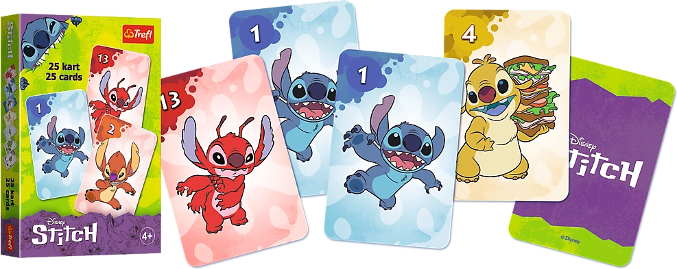 - Съдържа 25 карти с мотив Stitch.