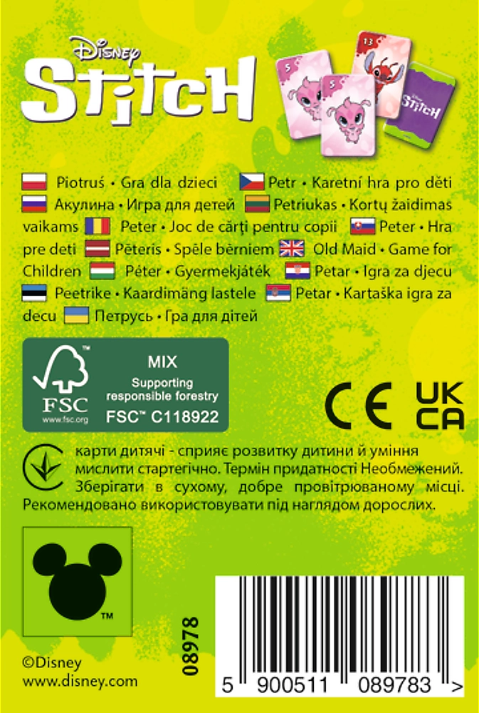 Насладете се на традиционната картова игра Черният Петър с любимия мотив Stitch от марката Trefl, която забавлява деца и възрастни поколения наред. Страхотно забавление за цялото семейство!